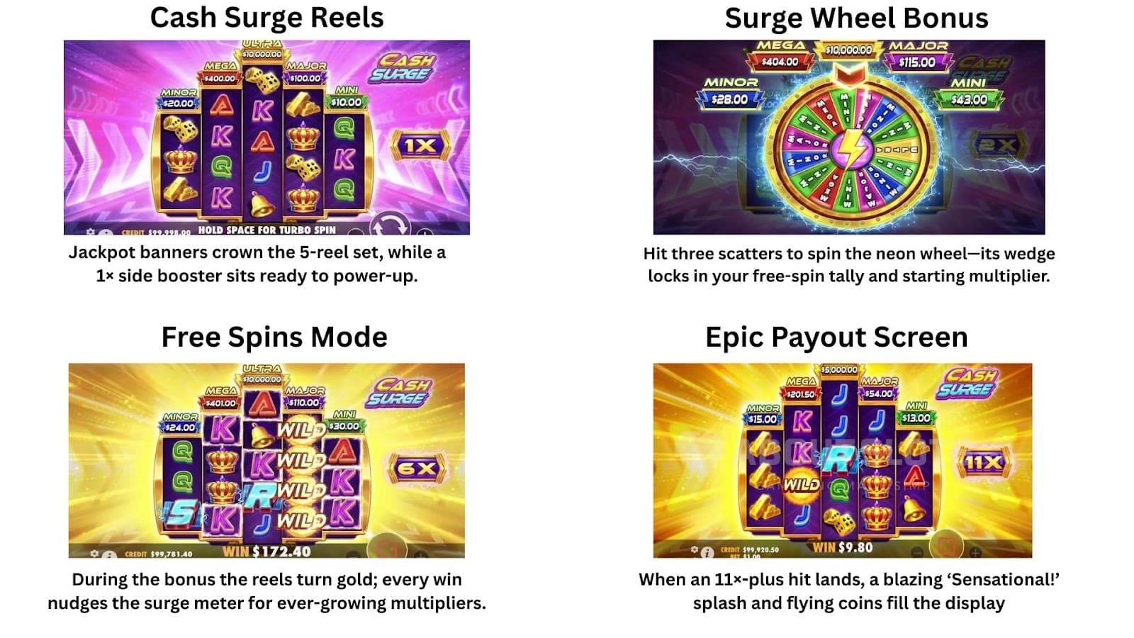 Cash Surge превращает каждое вращение в одно вращение, предлагая вам крупные прогрессивные призы. Вот лучшие сайты, где можно использовать эти 5 000 молний с максимальными бонусами и надежной защитой.